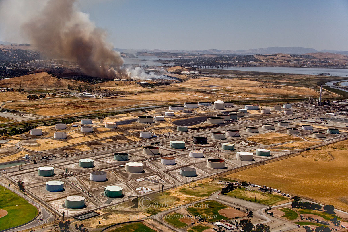 Brush fire at oil refinery near the Carquinez Bridge near Benicia, California