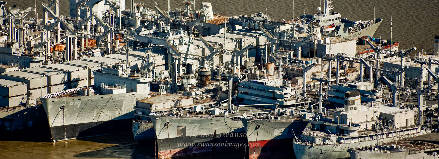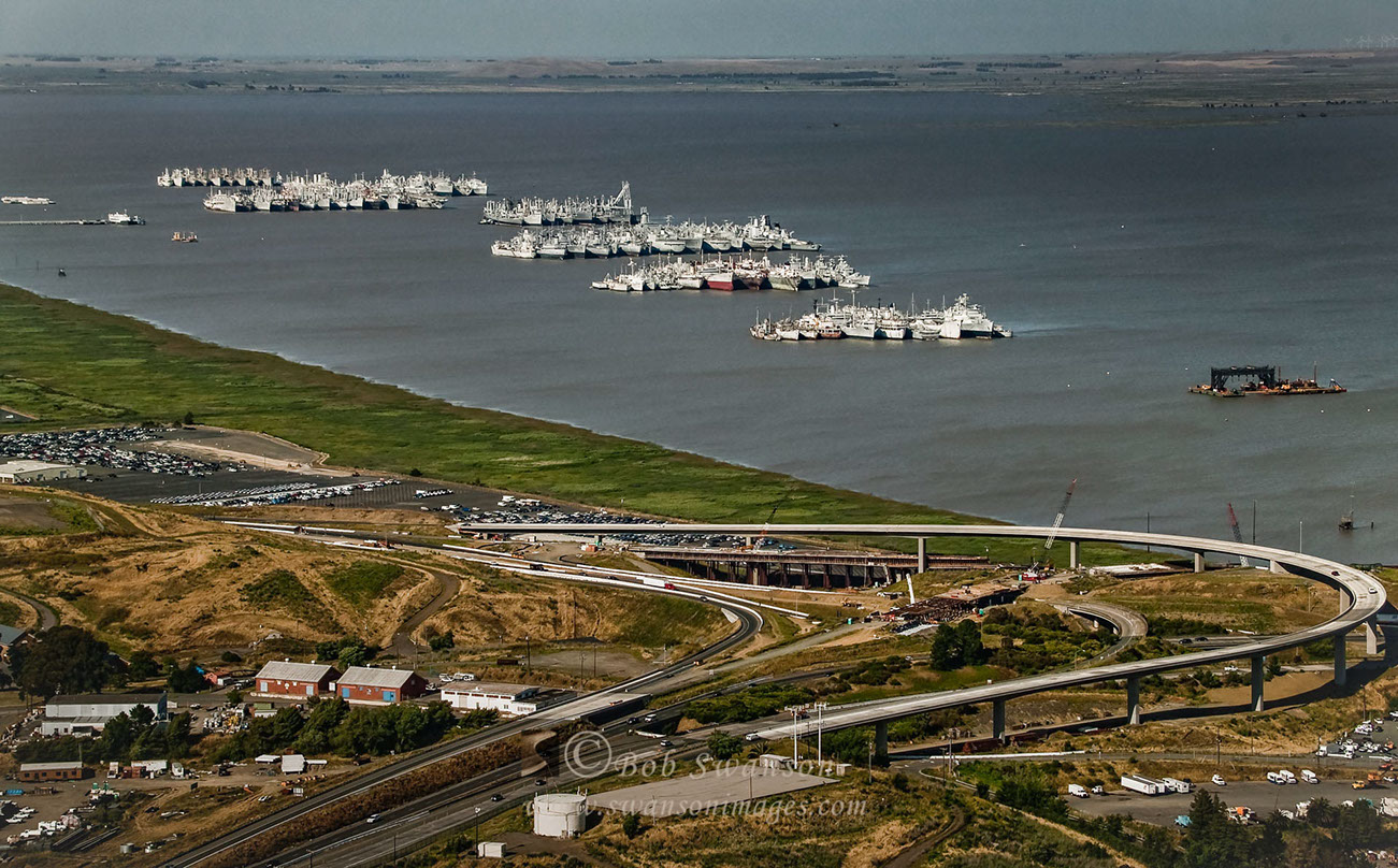 Ghost ship graveyard, the mothball fleet and freeway overpass.