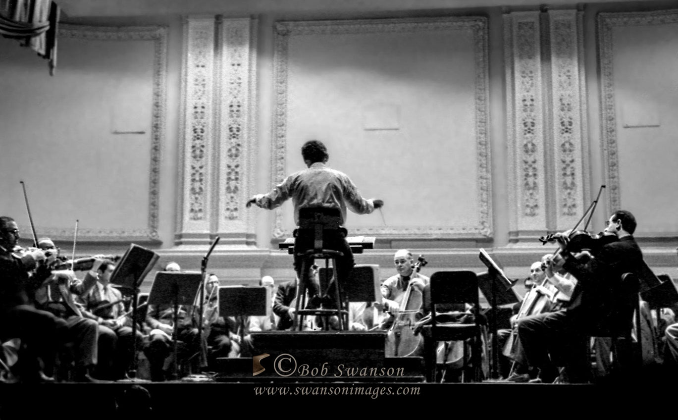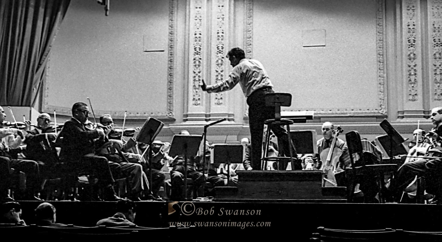 Leonard Bernstein conducting a free open rehearsal of the New York Philharmonic at Carnegie Hall.