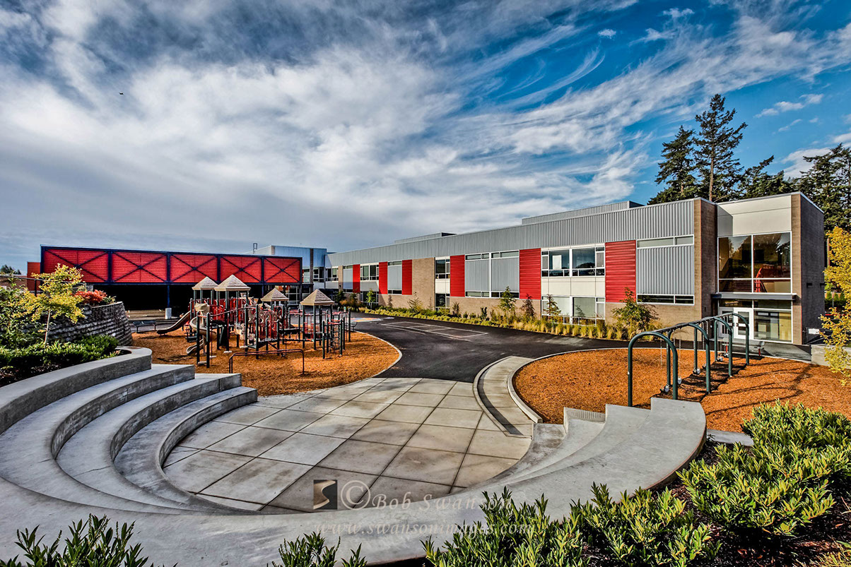 Bonnie Slope Elementary School Amphitheater, playground and building exterior for Centria