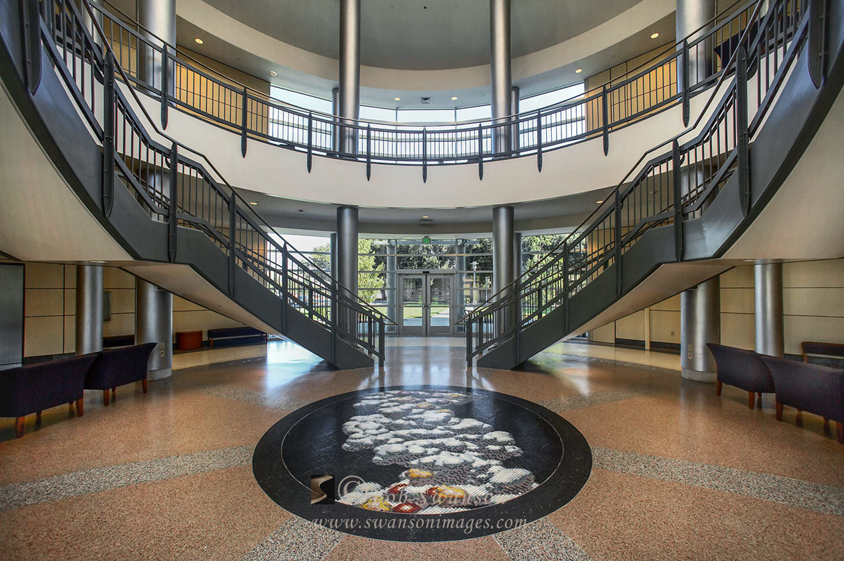 San Jose City College Math and Science Building entry with DNA floor inlay.