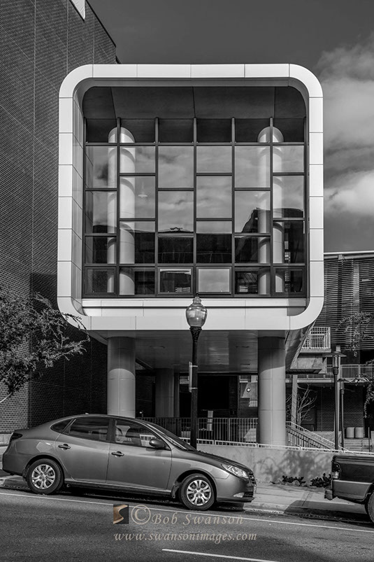 Black and white window detail. Sally Ride Elementary School, East L.A., California.