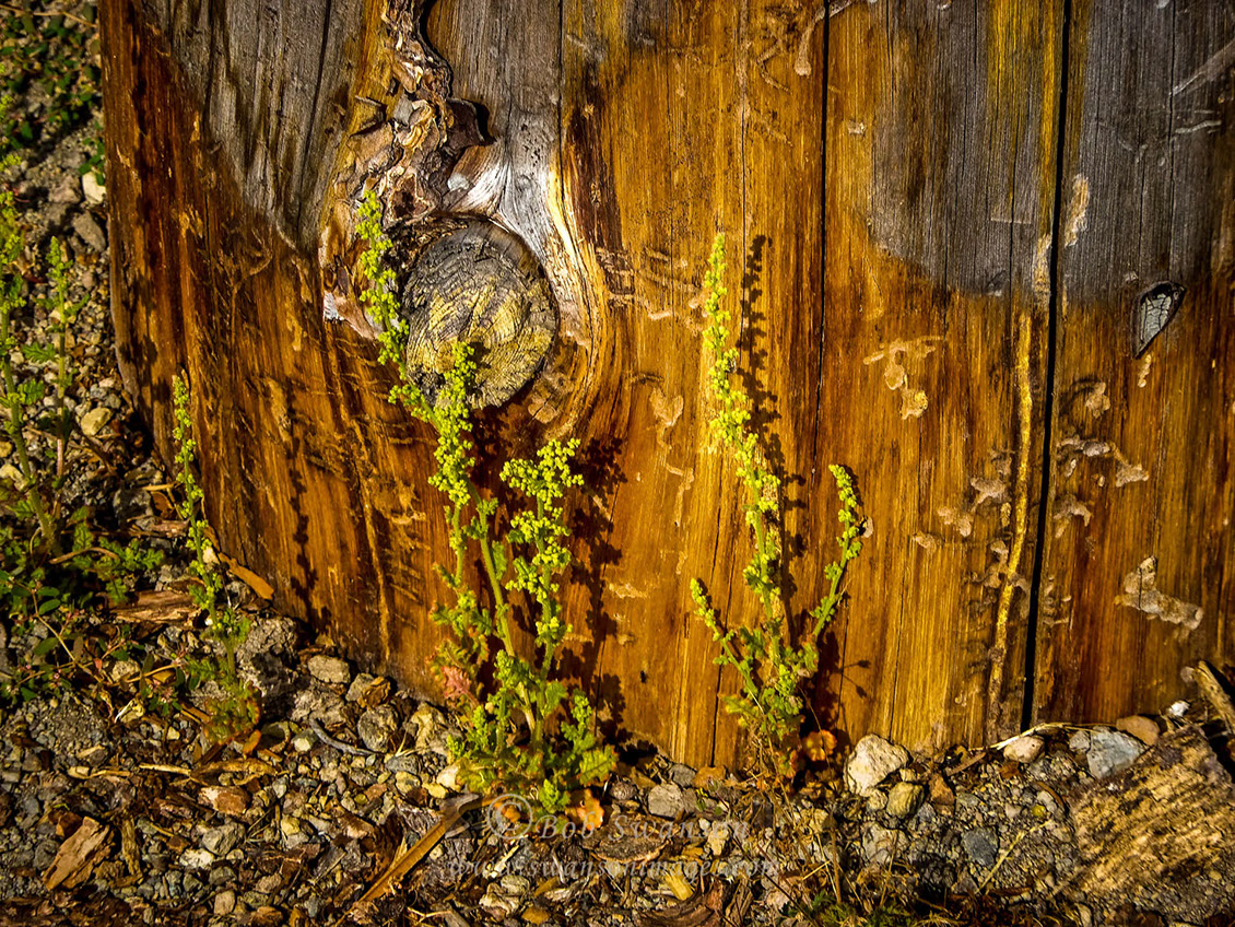 Rock and wood and shadows.