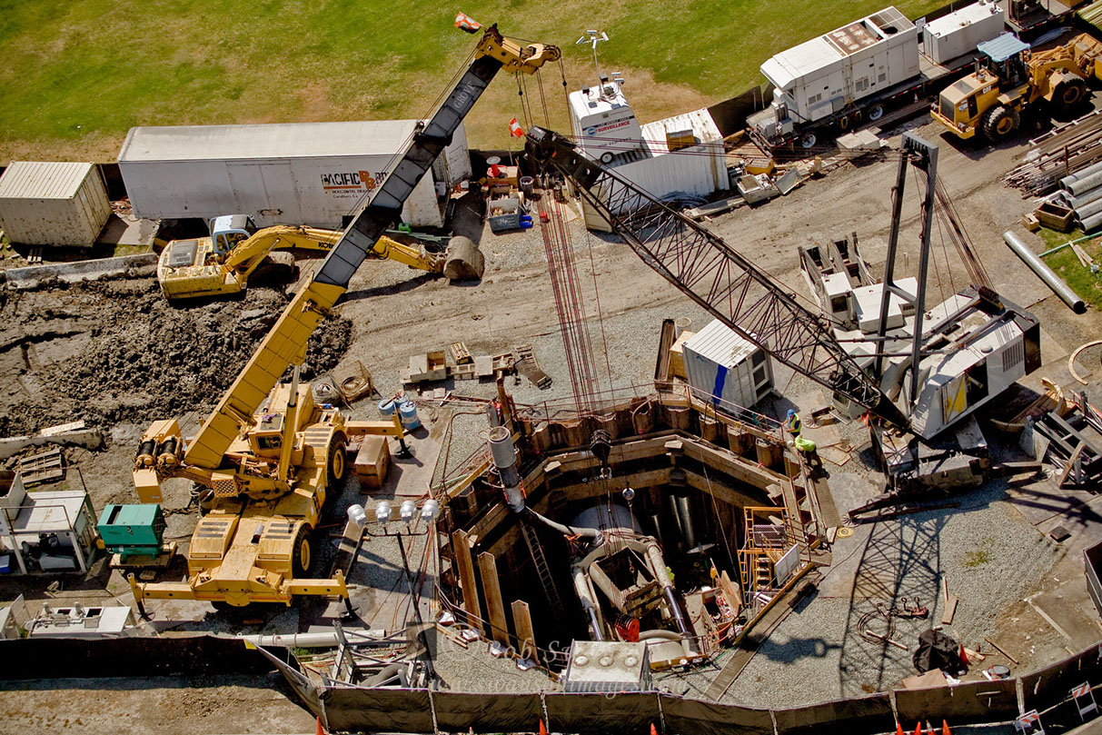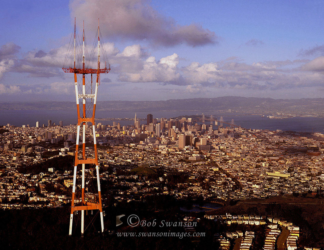Giant's Stadium under construction, marina and the Bay Bridge.