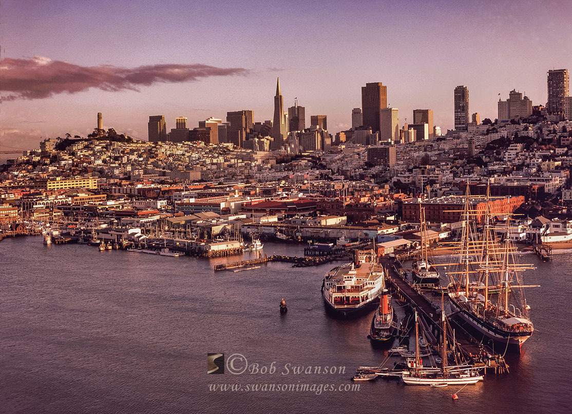 Fisherman's Wharf, San Francisco, the Balcutha and downtown.