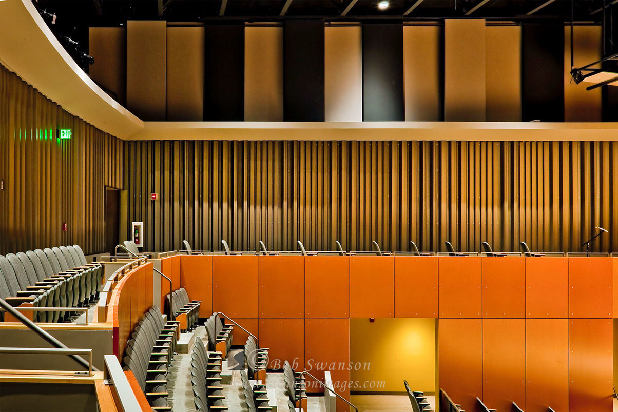 Cabrillo College, Aptos, California Samper Recital Hall interior with metal panel and acoustic treatment wall for Centria