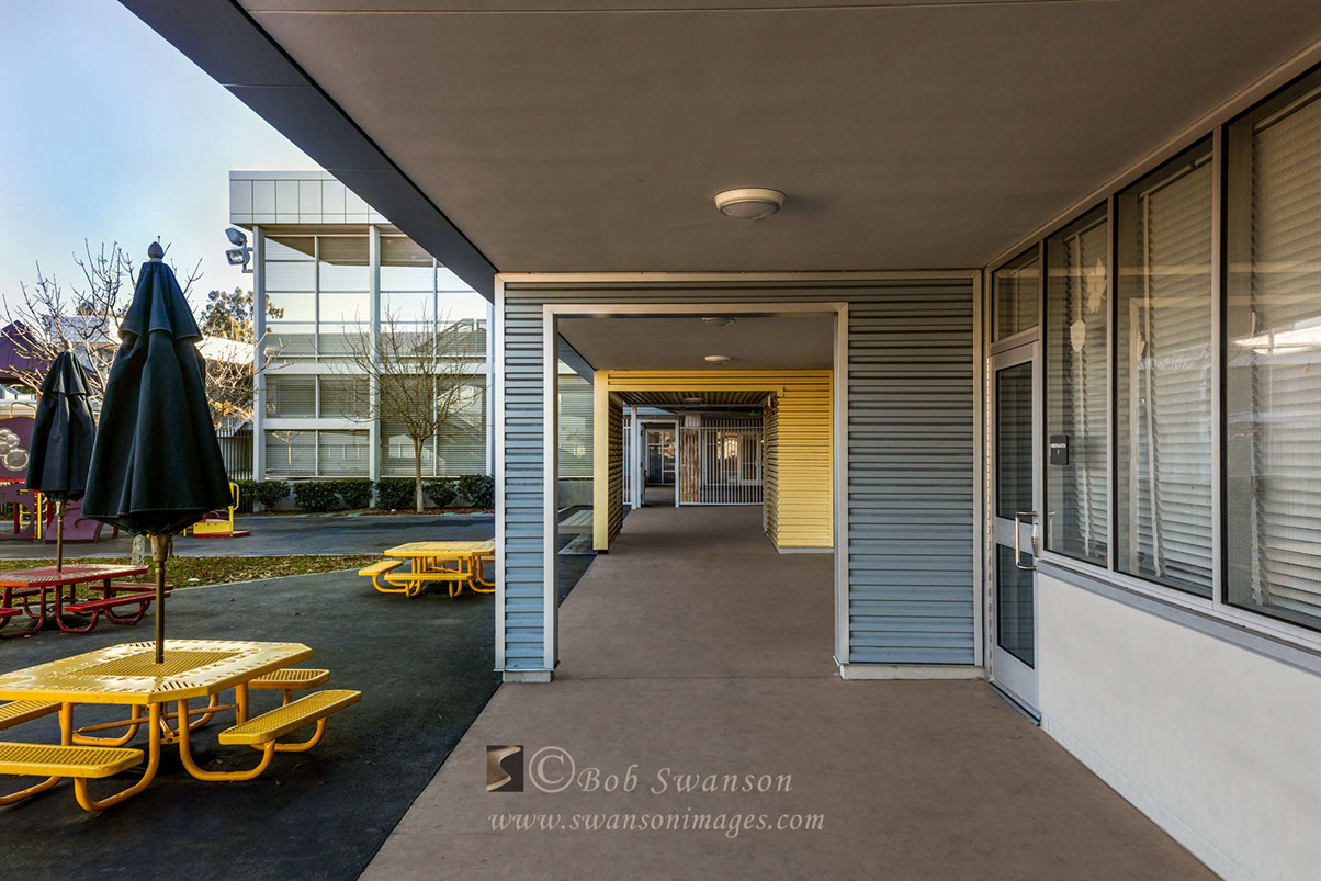 Classroom exterior and playground at the Sally Ride Elementary School, East L.A., California.