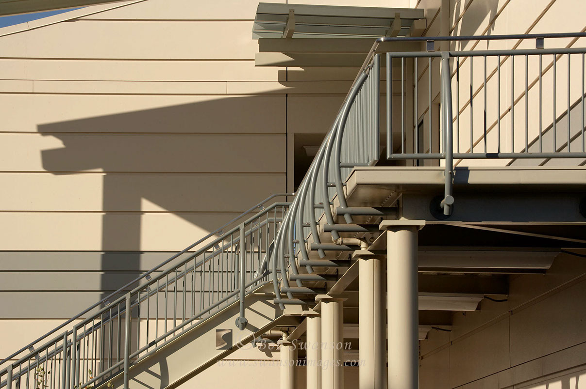 Concrete curved stairway and courtyard at the San Francisco SPCA Mission Adoption Center.