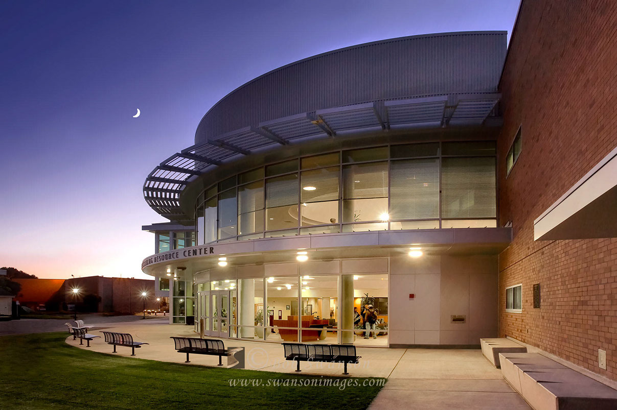 Hartnell community college library in Salinas, California for tBP Architects, with crescent moon, Salinas, California.