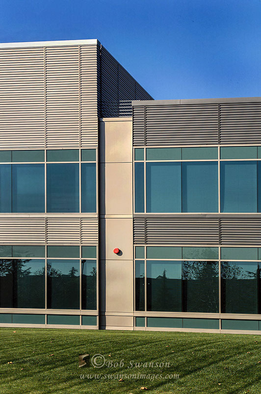 Siding detail of entry at Kaiser Hospital in East San Francisco Bay.