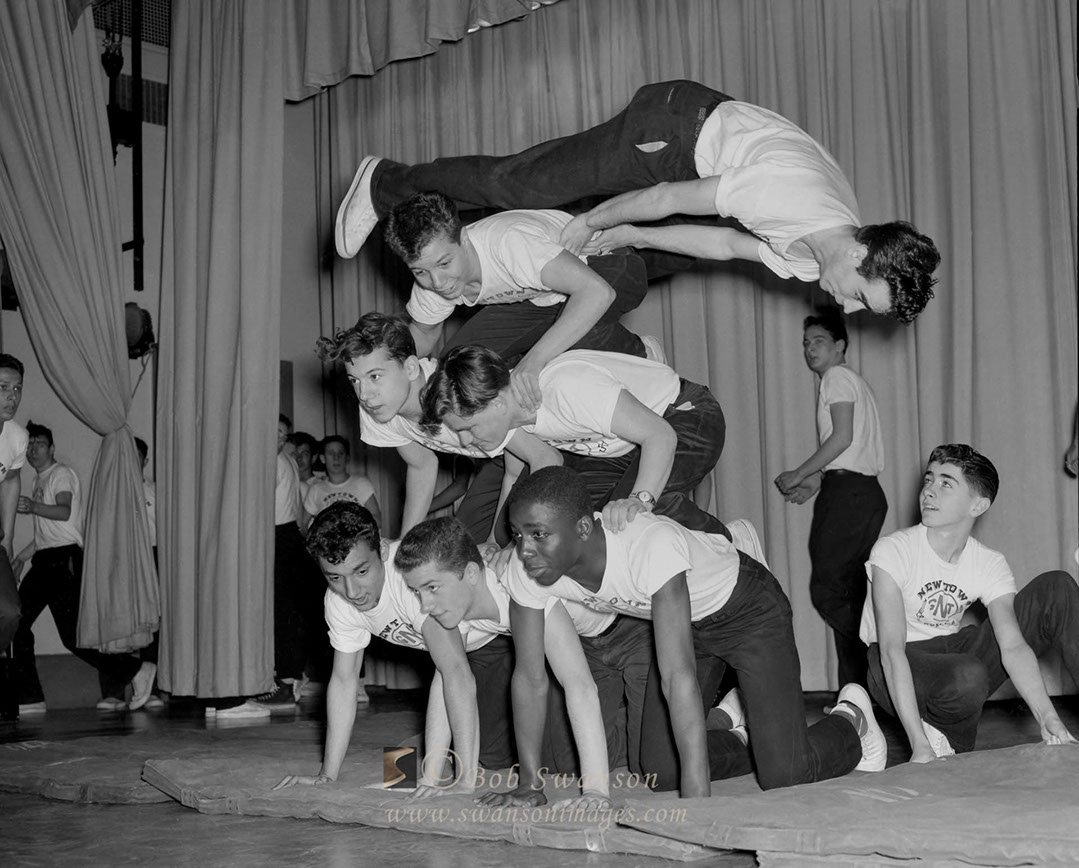 School assembly acrobats.