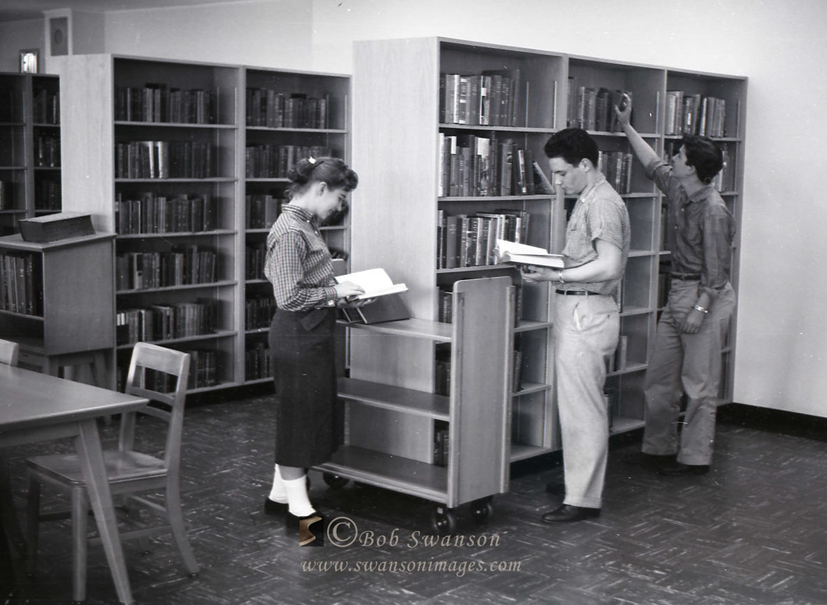 Studying in the library.